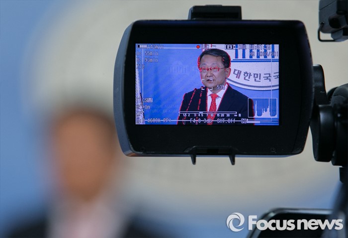 (서울=포커스뉴스) 28일 오후 서울 여의도 국회 정론관에서 새누리당의 차기 원내대표 후보로 거론되는 김재경 의원이 기자회견을 열고 입장 발표를 하고 있다.