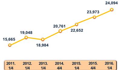 중소기업청(이하 중기청)이 28일 발표한 신설법인 동향에 따르면, 올 1분기 신설법인은 전년동기대비 6.4%(1442개) 증가한 2만4094개를 기록했다. 분기 기준으로 역대 최대치다. 신설법인 수는 지난해 1분기 2만2652개에서 지난해 4분기 2만3973개로 지속 증가하고 있다.