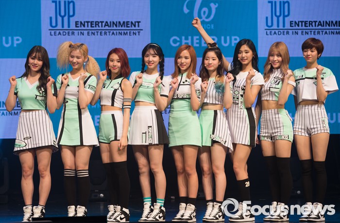 (서울=포커스뉴스) 25일 오후 서울 광진구 예스24 라이브홀에서 열린 걸그룹 트와이스의 미니앨범 'PAGE TWO' 발표 쇼케이스에 참석한 멤버들이 포토타임을 갖고 있다.