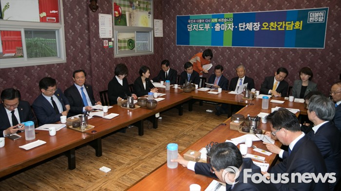 (광주=포커스뉴스) 김종인 더불어민주당 비대위 대표와 20대 총선 당선 및 낙선 인사들, 윤장현 광주시장 등이 25일 오후 광주의 한 음식점에서 당지도부·출마자·단체장 오찬 간담회를 하고 있다.