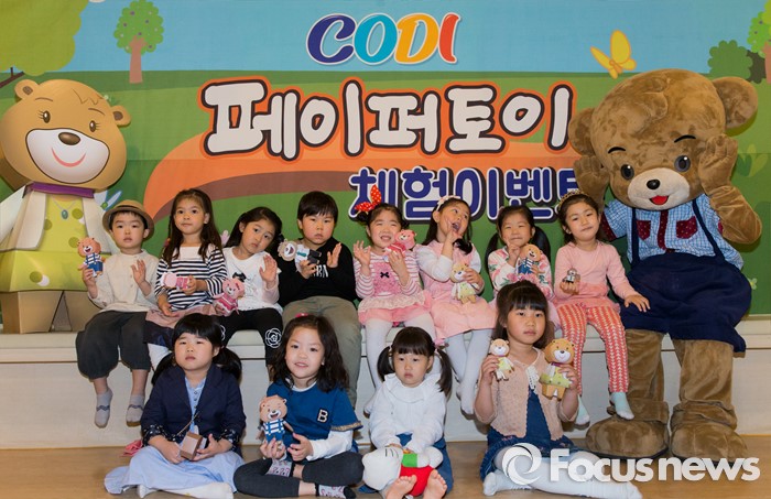 (서울=포커스뉴스) 28일 오전 서울 금천구 킹콩점프 키즈카페 신림점에서 아이들이 '코디 페이퍼토이' 제품을 선보이고 있다.