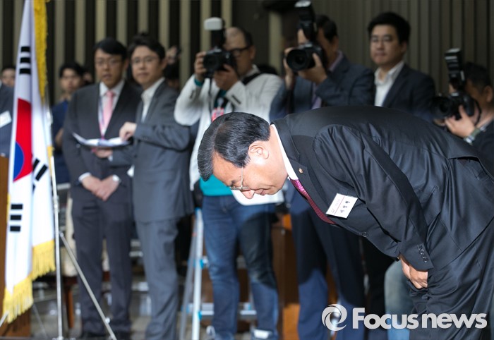 (서울=포커스뉴스) 26일 오전 서울 여의도 국회에서 열린 새누리당 20대 총선 당선자 워크숍에 참석한 이정현 전남 순천곡성 당선인이 인사하고 있다.