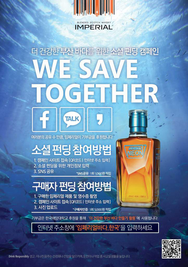 한편, 임페리얼은 지난 2013년부터 주요 삶의 터전 중 하나인 해양 환경을 보호하고자 한국해양대학교와 협약을 맺고 다양한 해양 보호 사회공헌 활동을 진행해 왔다.임페리얼 소셜 펀딩을 알리는 포스터.<사진제공=페르노리카코리아>