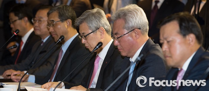 (서울=포커스뉴스) 26일 오전 서울 중구 더플라자에서 열린 '산업부 장관-10대 그룹 간담회'에서 참석자들이 주형환 산업통상자원부 장관의 모두발언을 듣고 있다.