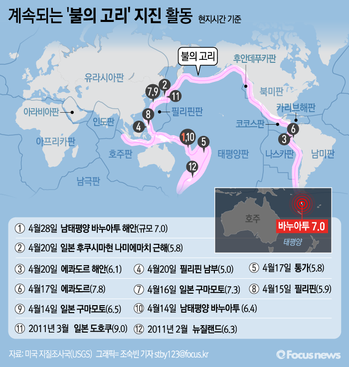 (서울=포커스뉴스) 남태평양 섬나라 바누아투에서 28일(현지시간) 규모 7.0 지진이 발생했다.
