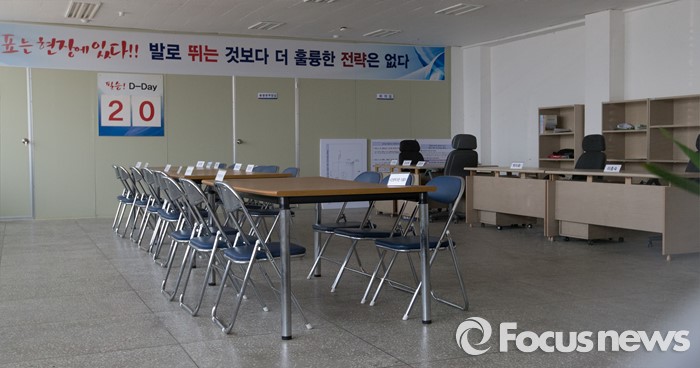 (부여=포커스뉴스) 29일 오후 이완구 전 국무총리가 2013년 재보궐 선거 때 사용한 충남 부여 선거사무소에서 서울고법 형사2부 관계자들이 현장검증을 앞두고 있는 가우데 현장검증이 실시될 선거사무소 내부 모습.