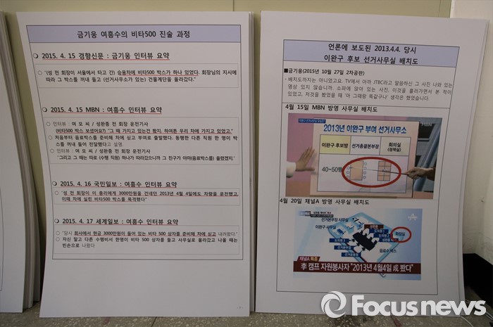 (부여=포커스뉴스) 29일 오후 이완구 전 국무총리가 2013년 재보궐 선거 때 사용한 충남 부여 선거사무소에서 서울고법 형사2부 관계자들이 현장검증을 실시한 가운데 진술과정과 배치도가 보이고 있다.