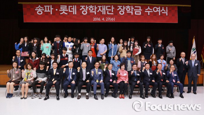 지난달 27일 열린 장학금 수여식에는 새누리당 박인숙 의원, 더불어민주당 최명길·남인순 의원을 비롯해 강감찬 서울시의회 부의장, 박춘희 송파구청장, 임춘대 송파구의장, 노병용 롯데물산 대표 등이 참석했다.