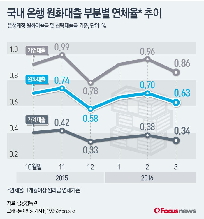 | △ [그래픽] 국내 은행 원화대출 부분별 연체율 추이 |