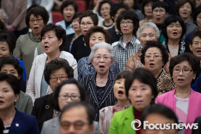 (서울=포커스뉴스)2일 오후 서울 국회 의원회관에서 열린 간호사 파독 50주년 기념행사에서 참석자들이 애국가를 부르고 있다.