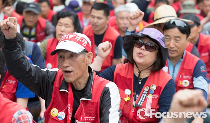 (세종=포커스뉴스) 민주노총 공공운수노조 택시지부 조합원들이 2일 세종 정부세종청사 국토교통부 앞에서 결의대회를 갖고 법인택시 전액관리제 쟁취 및 운송경비 전가행위 금지를 촉구하고 있다.