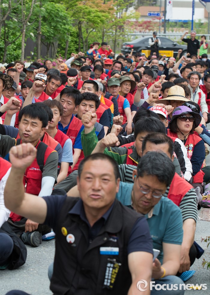 (세종=포커스뉴스) 민주노총 공공운수노조 택시지부 조합원들이 2일 세종 정부세종청사 국토교통부 앞에서 결의대회를 갖고 법인택시 전액관리제 쟁취 및 운송경비 전가행위 금지를 촉구하고 있다.