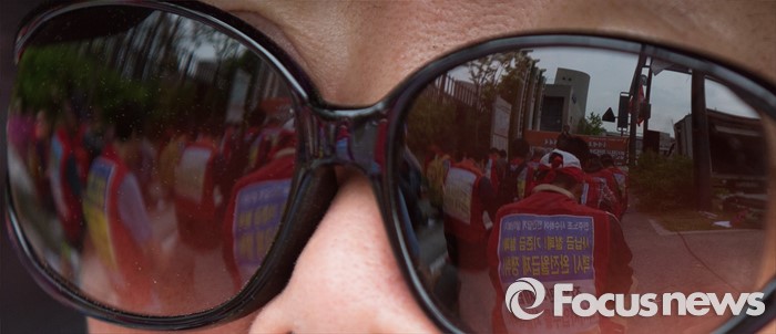 (세종=포커스뉴스) 민주노총 공공운수노조 택시지부 조합원들이 2일 세종 정부세종청사 국토교통부 앞에서 결의대회를 갖고 법인택시 전액관리제 쟁취 및 운송경비 전가행위 금지를 촉구하고 있다.