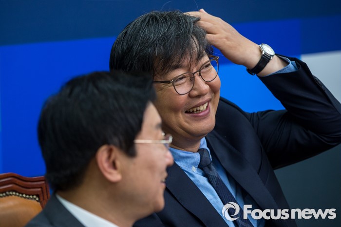 (서울=포커스뉴스) 이춘석(오른쪽) 더불어민주당 보수단체 불법 자금지원 의혹 규명 진상조사 태스크포스 위원장이 3일 오전 서울 여의도 국회에서 열린 2차 회의에 참석해 박범계 더불어민주당 의원과 대화를 나누고 있다.