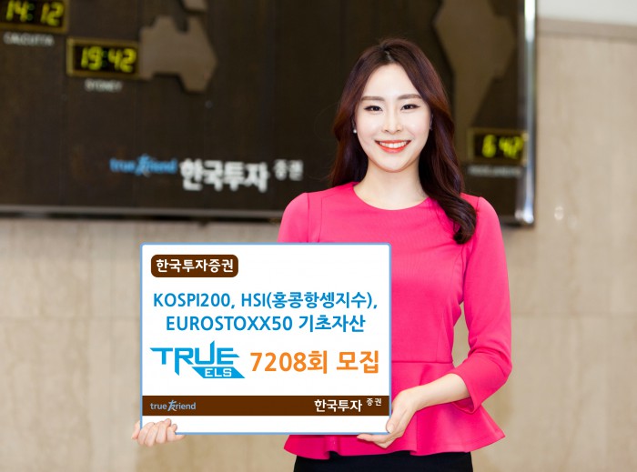 (서울=포커스뉴스) 한국투자증권이 오는 4일까지 KOSPI200, HSI(홍콩항셍지수), EUROSTOXX50지수를 기초자산으로 하는 'TRUE ELS 7208회 스텝다운형'을 총 70억 한도로 모집한다고 3일 밝혔다.