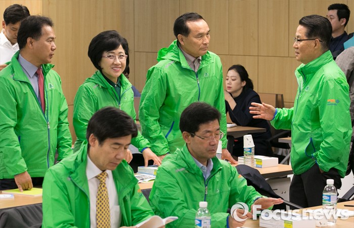 (서울=포커스뉴스) 박지원(오른쪽) 국민의당 원내대표가 3일 오전 서울 여의도 국회 의원회관에서 열린 정책역량 강화 집중워크샵에 참석해 20대 국회 초선 당선인들과 대화하고 있다.