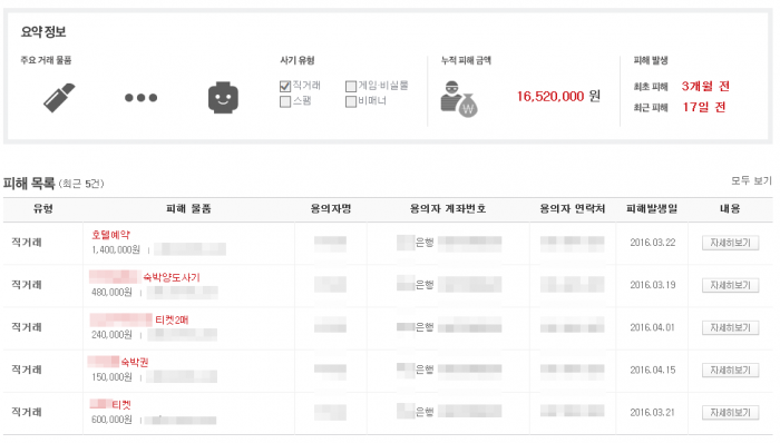 경찰은 "중고거래 사이트에 지나치게 저렴한 물건이 올라오면 우선 의심해야 한다"고 당부하며 "사기 피해 예방을 위해 신고가 접수된 전화번호로 연락이 오면 알려주는 '경찰청 사이버캅' 앱을 설치하는 것도 방법"이라고 전했다.인터넷 중고거래 피해신고 사이트에서 조회한 홍씨의 범행내역. <사진제공=서울 도봉경찰서>