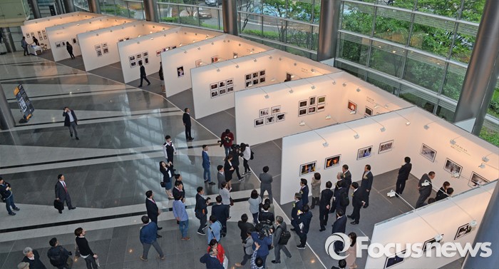 (서울=포커스뉴스) 3일 오전 서울 강남구 코엑스에서 열린 '52회 한국보도사진전 개막식'에 참석한 인사들이 전시된 사진을 관람하고 있다. '찰나의 기록, 시대의 진실'을 주제로 진행된 이번 전시는 시대의 진실을 기록한다는 사명감으로 역사의 현장을 묵묵히 지키며 취재한 수백만 컷 중 선정된 150여점과 '현장의 사진기자', '역대 대상 수상작' 등 250여점의 사진이 전시된다.