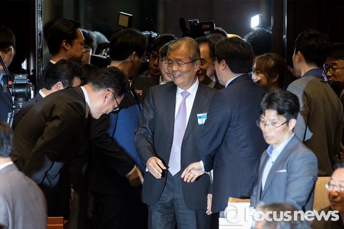(서울=포커스뉴스) 김종인 더불어민주당 비상대책위 대표가 3일 오후 서울 여의도 국회에서 열린 '20대 국회의원 당선자 및 당무위원 연석회의'에 참석하기 위해 회의실로 들어서며 당선자들과 인사 하고 있다.