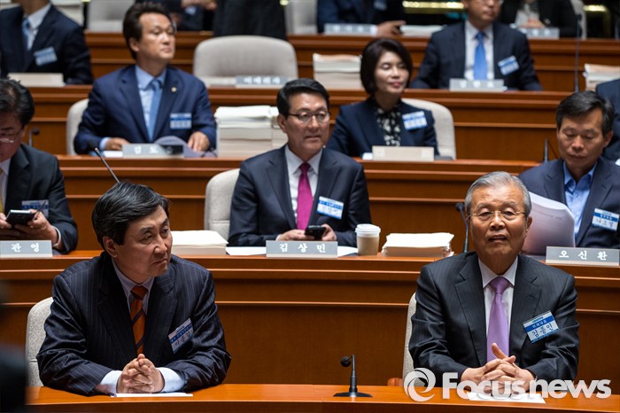 | △ 20대 국회의원 당선자 연석회의 참석한 김종인-이종걸 |