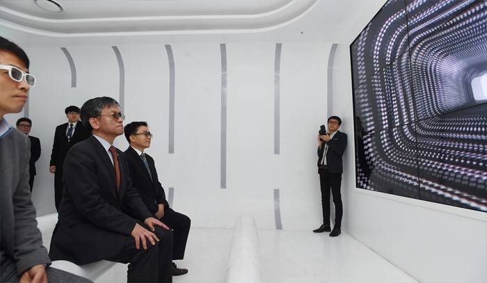 (서울=포커스뉴스) 최상목 기획재정부 차관이 3일 서울 마포구 상암동 누리꿈스퀘어 디지털파빌리온 전시관에서 ICT체험을 하고 있다. <사진제공=산업통상자원부>