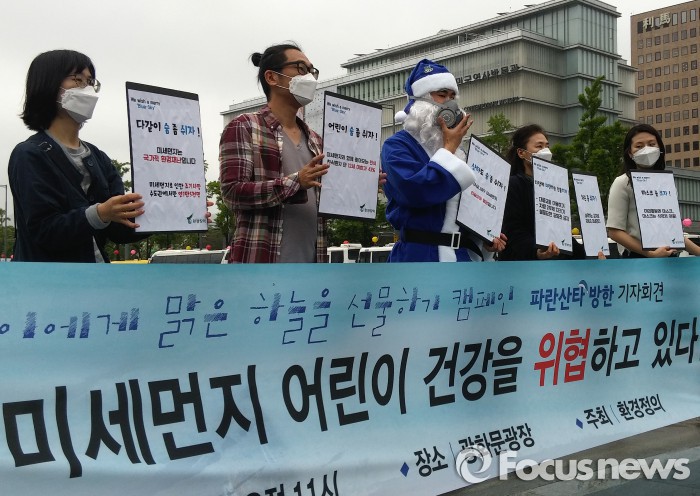 (서울=포커스뉴스) 환경운동단체 '환경정의'가 3일 오전 서울 광화문 광장에서 '어린이에게 맑은 하늘 선물하기 캠페인'을 열고 어린이 건강 보호를 위해서는 미세먼지 문제를 해결해야 한다고 강조했다.