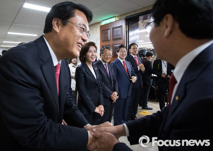 | △ 인사하는 새누리당 원내대표 후보자들 |