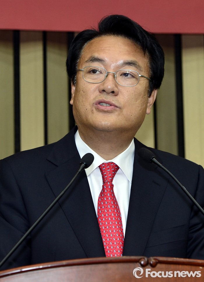 (서울=포커스뉴스) 3일 오후 서울 여의도 국회에서 열린 새누리당 20대 국회 첫 원내대표 및 정책위의장 선출을 위한 당선자 총회에서 선출된 정진석 신임 원내대표가 소감을 전하고 있다.