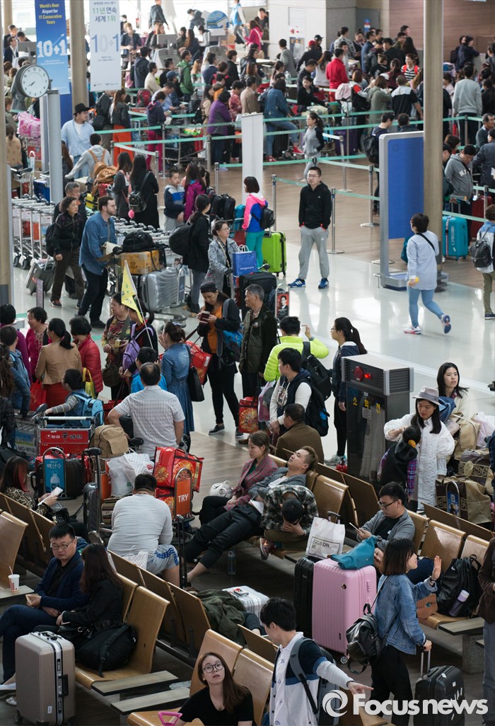 (인천공항=포커스뉴스) 4일 오전 인천국제공항 출국장에 황금연휴를 앞두고 출국하는 여행객들로 북적이고 있다.