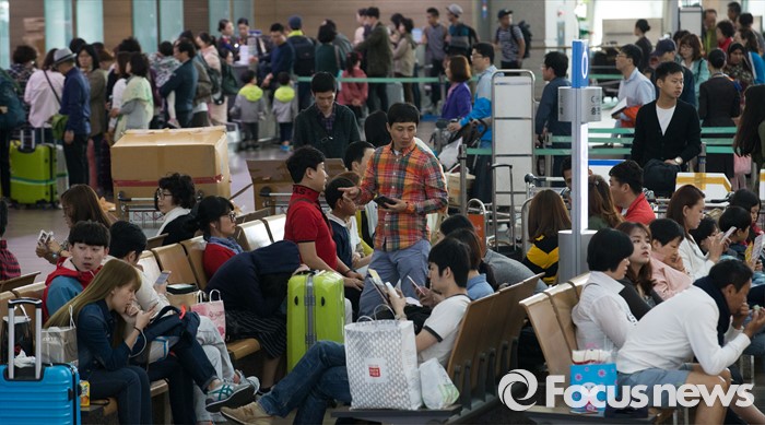 (인천공항=포커스뉴스) 4일 오전 인천국제공항 출국장에 황금연휴를 앞두고 출국하는 여행객들로 북적이고 있다.