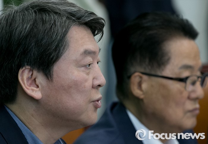 (서울=포커스뉴스) 안철수(왼쪽) 국민의당 상임공동대표가 4일 오전 서울 여의도 국회에서 열린 최고위원회의에 참석해 모두발언을 하고 있다.
