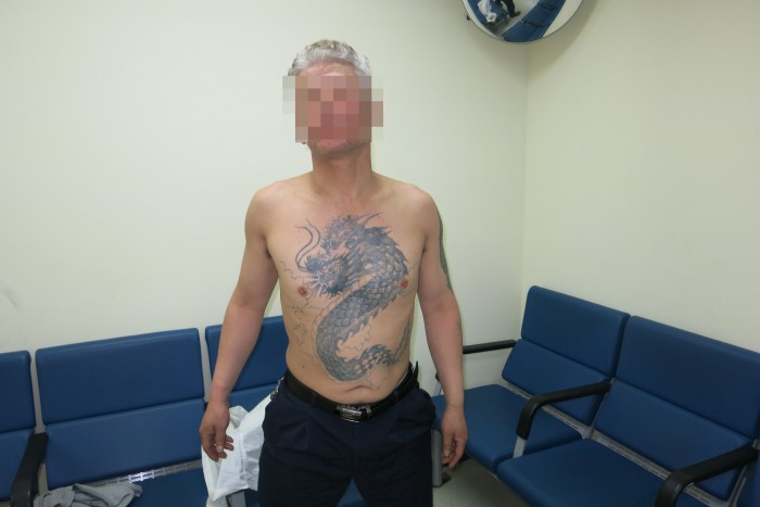 그는 전날에도 이 시장 골목길에서 속옷만 입은 채 앞가슴 전체에 그려진 용 문신을 보여주며 상인들에게 욕설을 하거나 고함을 치며 위협한 혐의도 받고 있다.