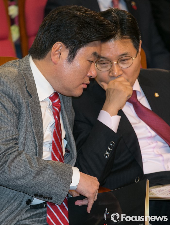홍문종 의원은 차기 전당대회에서 당 대표에 도전할 것이냐는 질문에는 "한다는 가능성을 포함해 모든 가능성을 검토하고 있다는 건 솔직한 말씀"이라고 출마가능성을 시사했다.26일 오후 서울 여의도 국회 의원회관에서 열린 15회 대한민국 국회대상 시상식에 참석한 원유철(왼쪽) 새누리당 원내대표와 홍문종 의원이 대화하고 있다. 2016.01.26 박동욱 기자