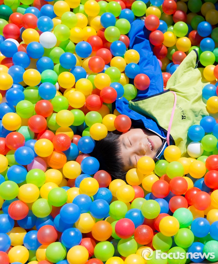 (서울=포커스뉴스) 어린이날을 하루 앞둔 4일 오전 서울 마포구 월드컵공원 난지잔디광장에서 2016 마포어린이축제에 참가한 어린이가 볼풀장에서 즐거운 시간을 보내고 있다.