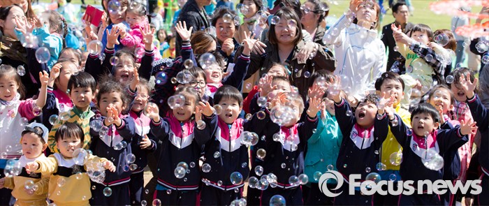 (서울=포커스뉴스) 어린이날을 하루 앞둔 4일 오전 서울 마포구 월드컵공원 난지잔디광장에서 2016 마포어린이축제에 참가한 어린이들이 버블쇼를 보며 즐거운 시간을 보내고 있다.