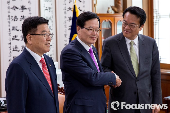 정 신임 원내대표도 "사석에서 박근혜 대통령께서 김성식 의원이 굉장히 뛰어나신 분이라고 여러차례 얘기 하셨다"며 김 의장에 대한 칭찬을 보탰다.