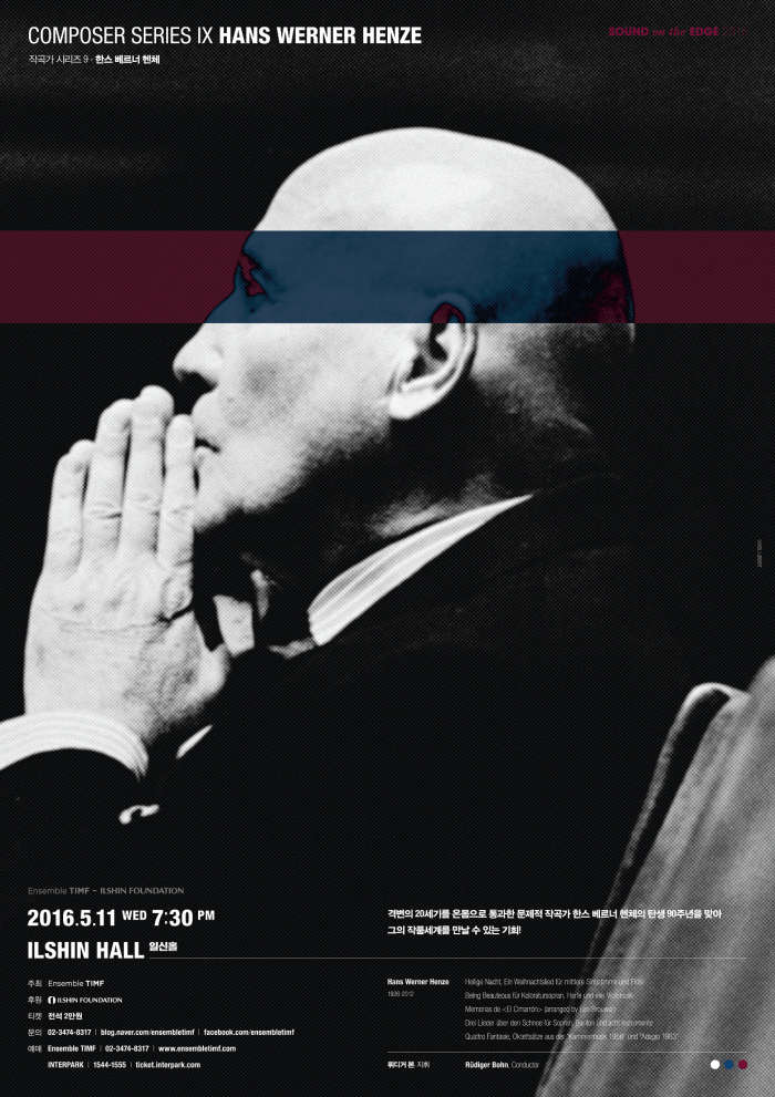 현대음악에 대한 탁월한 해석으로 널리 알려진 지휘자 뤼디거 본(Rüdiger Bohn)과 함께하는 이번 공연은 격변의 20세기를 온몸으로 통과한 한스 베르너 헨체의 탄생 90주년을 맞아 그의 작품 세계를 집중 조명한다.