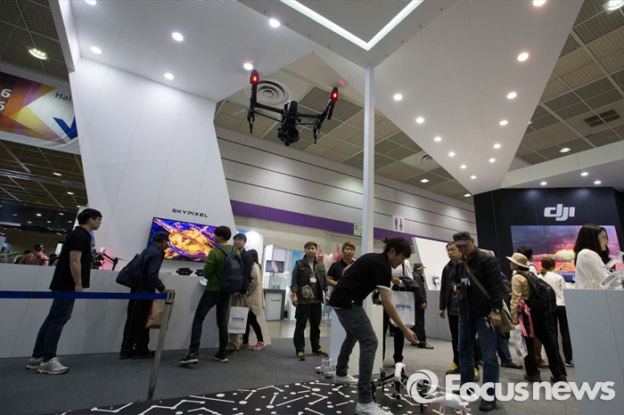 (서울=포커스뉴스) 4일 오후 서울 강남구 코엑스 A,B홀에서 열린 2016 서울국제사진영상기자재전(P&I)에서 관람객들이 제품을 구경하고 있다.