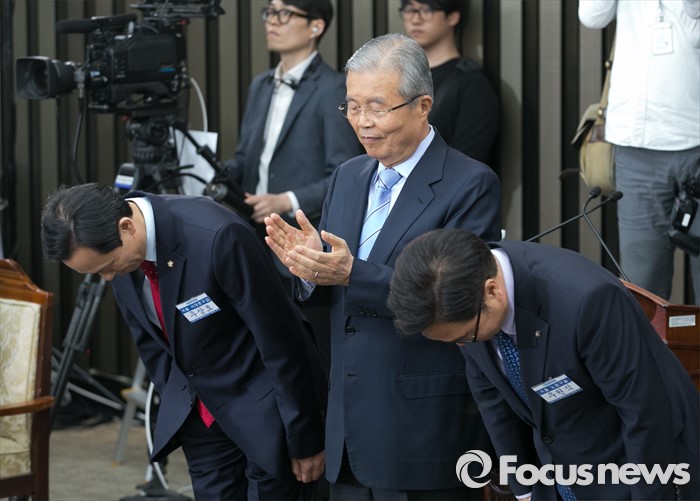 | △ 원내대표 후보들에게 박수 보내는 김종인 |