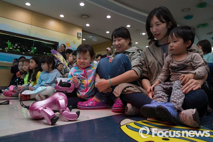 (서울=포커스뉴스) 어린이날을 앞둔 4일 오후 서울 서초구 서울시어린이병원에서 열린 '로봇댄스 및 체험' 행사에 참가한 어린이들이 공연을 관람하고 있다.