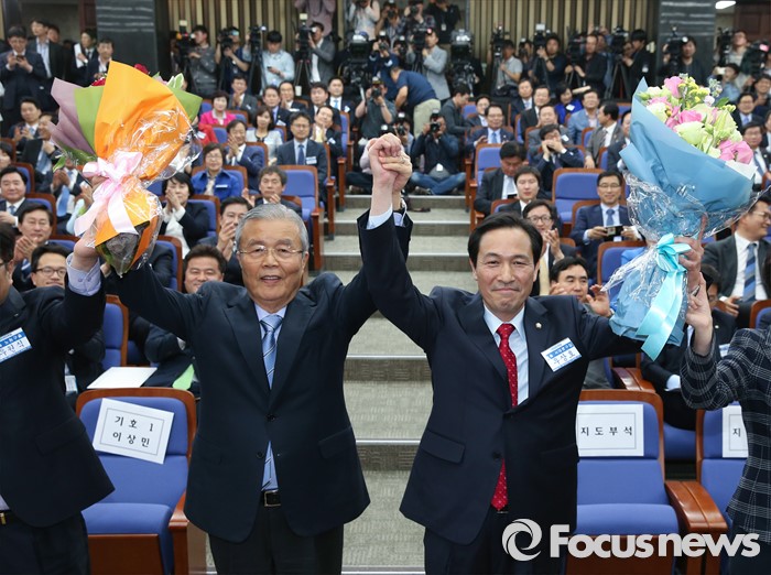 | △ 함께 손 잡은 김종인-우상호 |