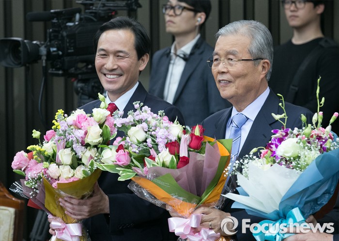 | △ 꽃다발 든 김종인-우상호 |