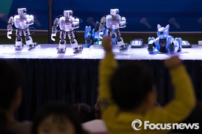 (서울=포커스뉴스) 어린이날을 앞둔 4일 오후 서울 서초구 서울시어린이병원에서 열린 '로봇댄스 및 체험' 행사에 참가한 어린이들이 공연을 관람하고 있다.