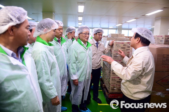 (인천=포커스뉴스) 박지원 국민의당 원내대표를 비롯한 20대 총선 당선인들이 4일 오후 인천 남동구 (주)서울화장품 인천공장에서 열린 국민의당 정책역량강화 집중 워크샵 '중소기업 대표 및 근로자와의 간담회'에서 화장품 제조 라인을 둘러보고 있다.