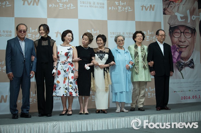 tvN '디어 마이 프렌즈'는 오는 13일 오후 8시 30분 첫 방송된다.(서울=포커스뉴스) 4일 오후 서울 강남구 임피리얼 팰리스 호텔에서 열린 tvN 10주년 특별기획 '디어 마이 프렌즈' 제작발표회에 참석한 배우 주현(왼쪽부터), 고현정, 고두심, 윤여정, 김혜자, 김영옥, 나문희, 신구가 포토타임을 갖고 있다. 2016.05.04 김유근 기자 황혼의 이야기를 그린 노희경 작가의 신작 tvN '디어 마이 프렌즈'가 오는 13일 오후 8시 30분 첫 방송된다. 사진은 드라마 포스터. <사진제공=CJ E&M>황혼의 이야기를 그린 노희경 작가의 신작 tvN '디어 마이 프렌즈'가 오는 13일 오후 8시 30분 첫 방송된다. 사진은 드라마 포스터. <사진제공=CJ E&M>