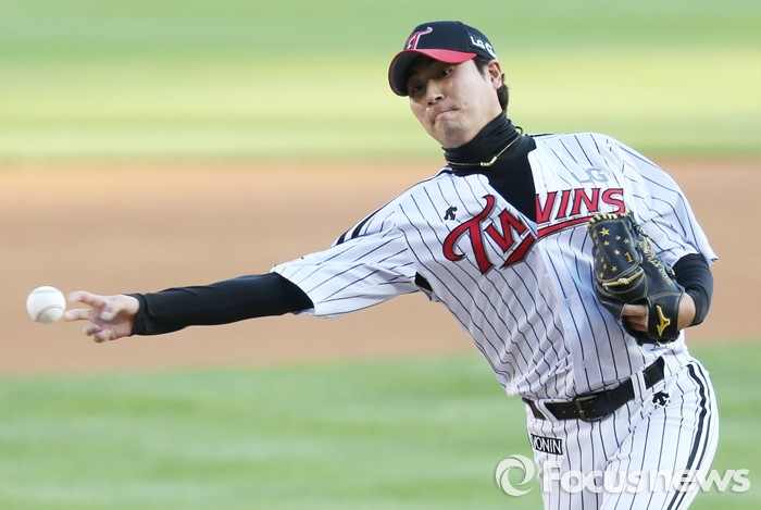 (서울=포커스뉴스) 4일 서울 잠실구장에서 열린 2016 프로야구 두산-LG 경기에서 1회초 LG 선발투수 우규민이 투구하고 있다.