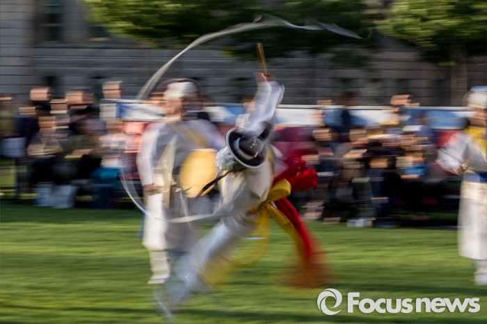 (서울=포커스뉴스) 4일 오후 서울시청 광장에서 열린 '광대 줄타기 연희 한마당'에서 솟대쟁이패 단원들이 멋진 공연을 하고 있다.