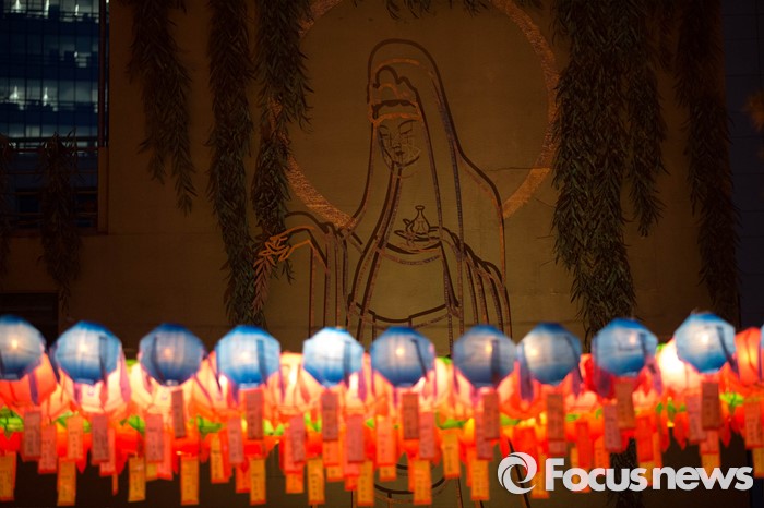 (서울=포커스뉴스) 4일 오후 서울 종로구 조계사에서 연등 점등식이 열리고 있다.
