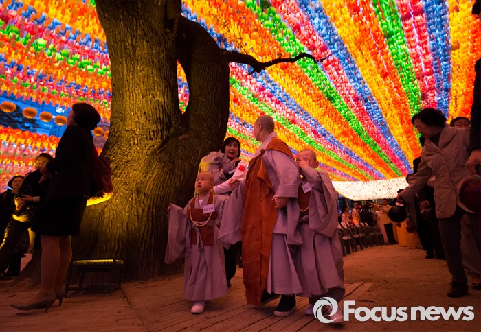 (서울=포커스뉴스) 4일 오후 서울 종로구 조계사에서 연등 점등식이 열리고 있다.