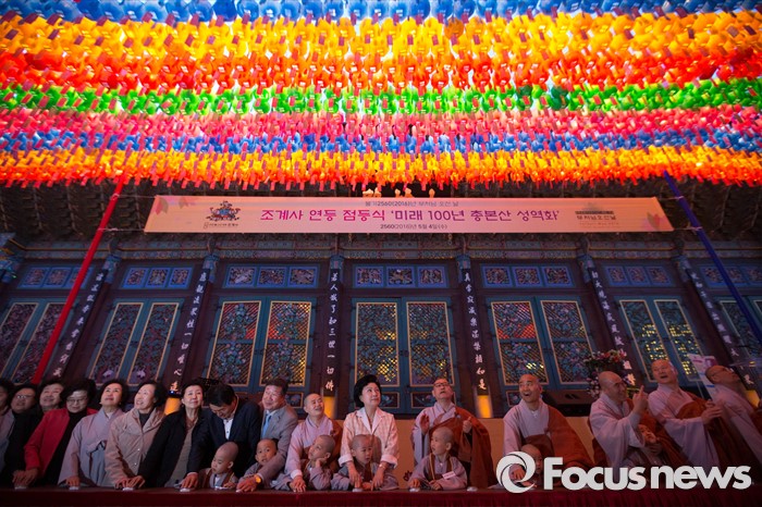 (서울=포커스뉴스) 4일 오후 서울 종로구 조계사에서 연등 점등식이 열리고 있다.